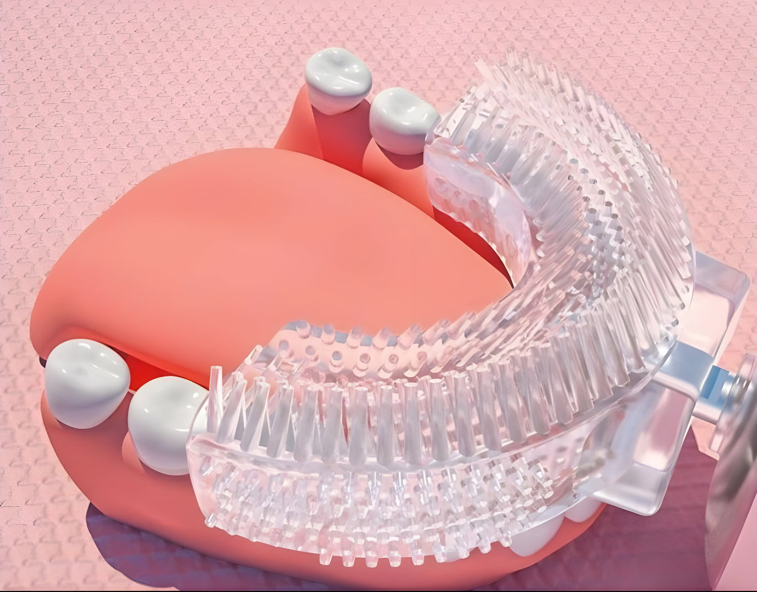 De unieke U-vorm past precies rondom het gebit en reinigt alle tanden tegelijk. De borstelharen zijn gemaakt van voedselveilige siliconen, extra zacht voor gevoelige melktandjes. Tegelijkertijd gaat deze vorm zeer grondig te werk: in één keer wordt 360° rond elk tandje gereinigd, zodat je zeker weet dat er geen plekjes worden overgeslagen