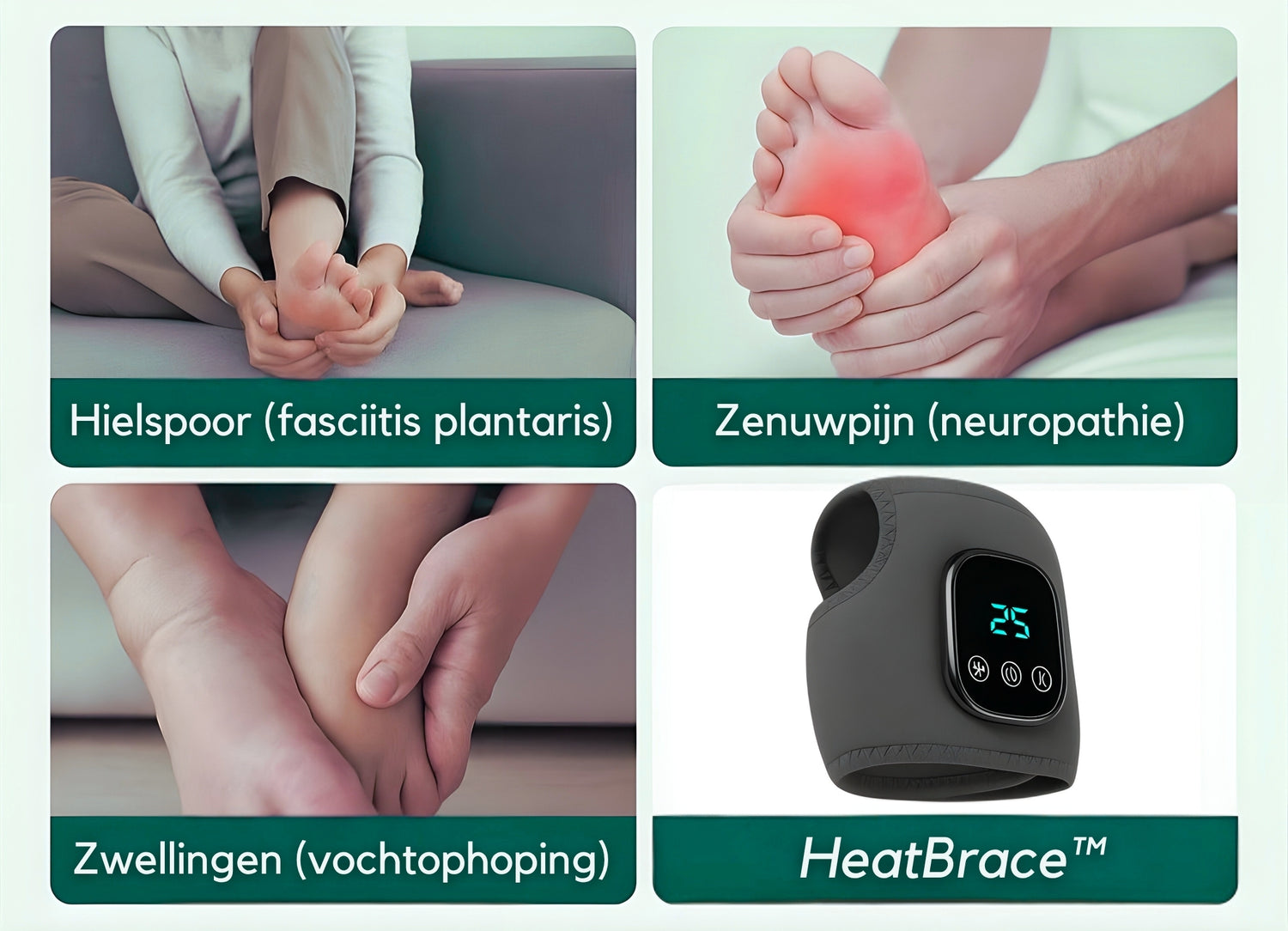 Onze HeatBrace™ wordt dagelijks gebruikt door mensen met pijn, tintelingen en zware, vermoeide voeten. Uit hun ervaringen blijkt dat de meeste gebruikers al na de eerste keer duidelijk verschil merken: minder pijn, meer ontspanning en weer met vertrouwen kunnen bewegen.