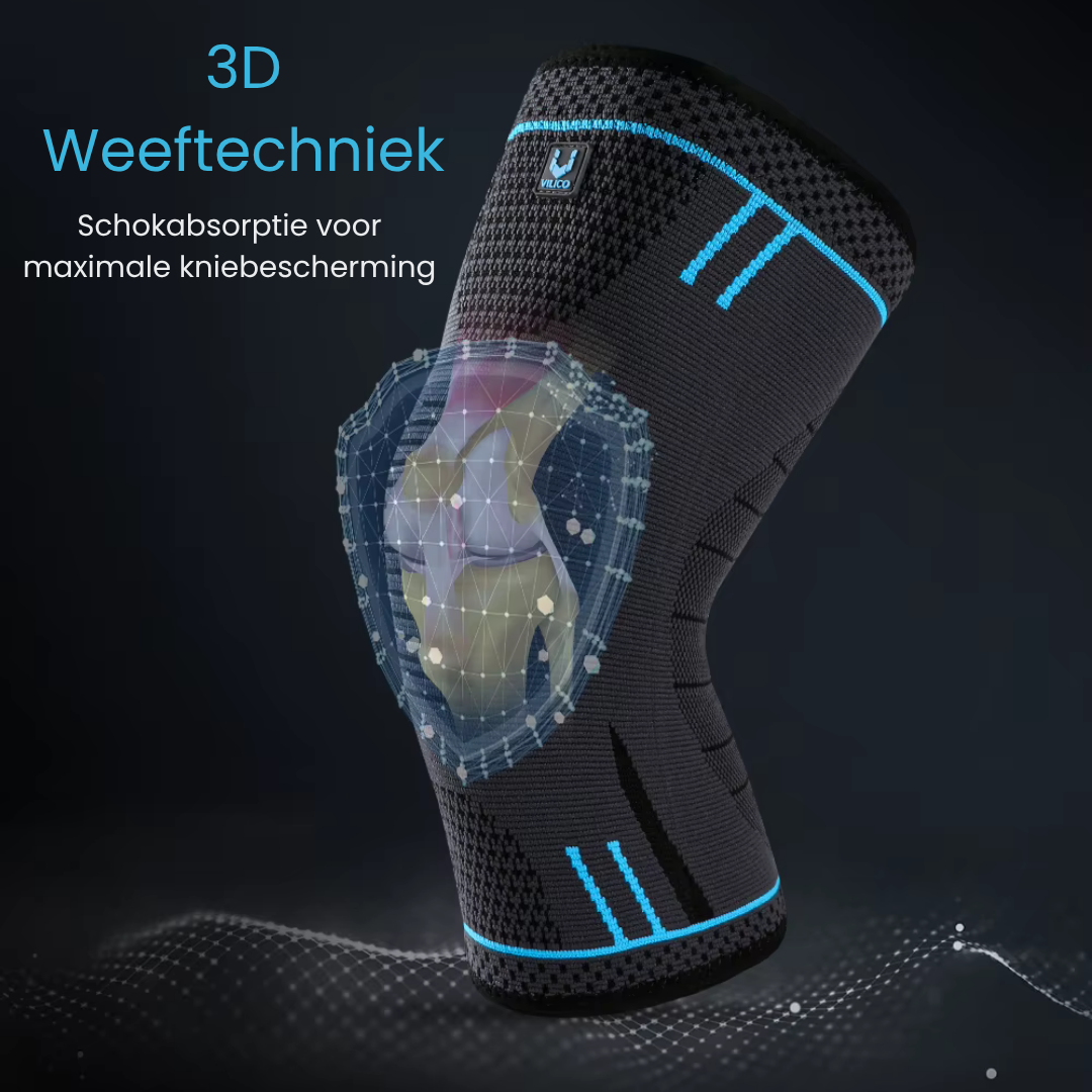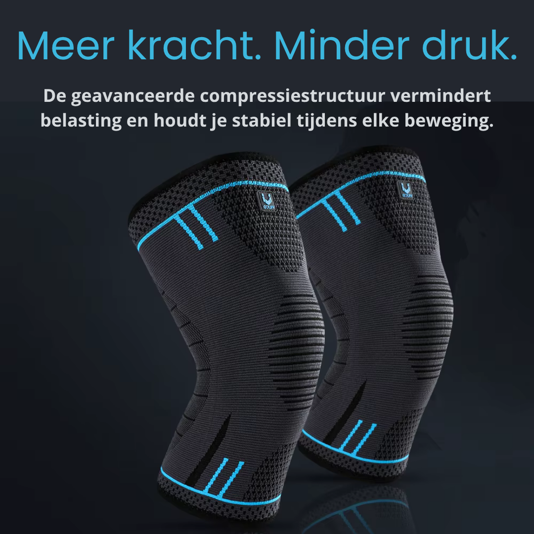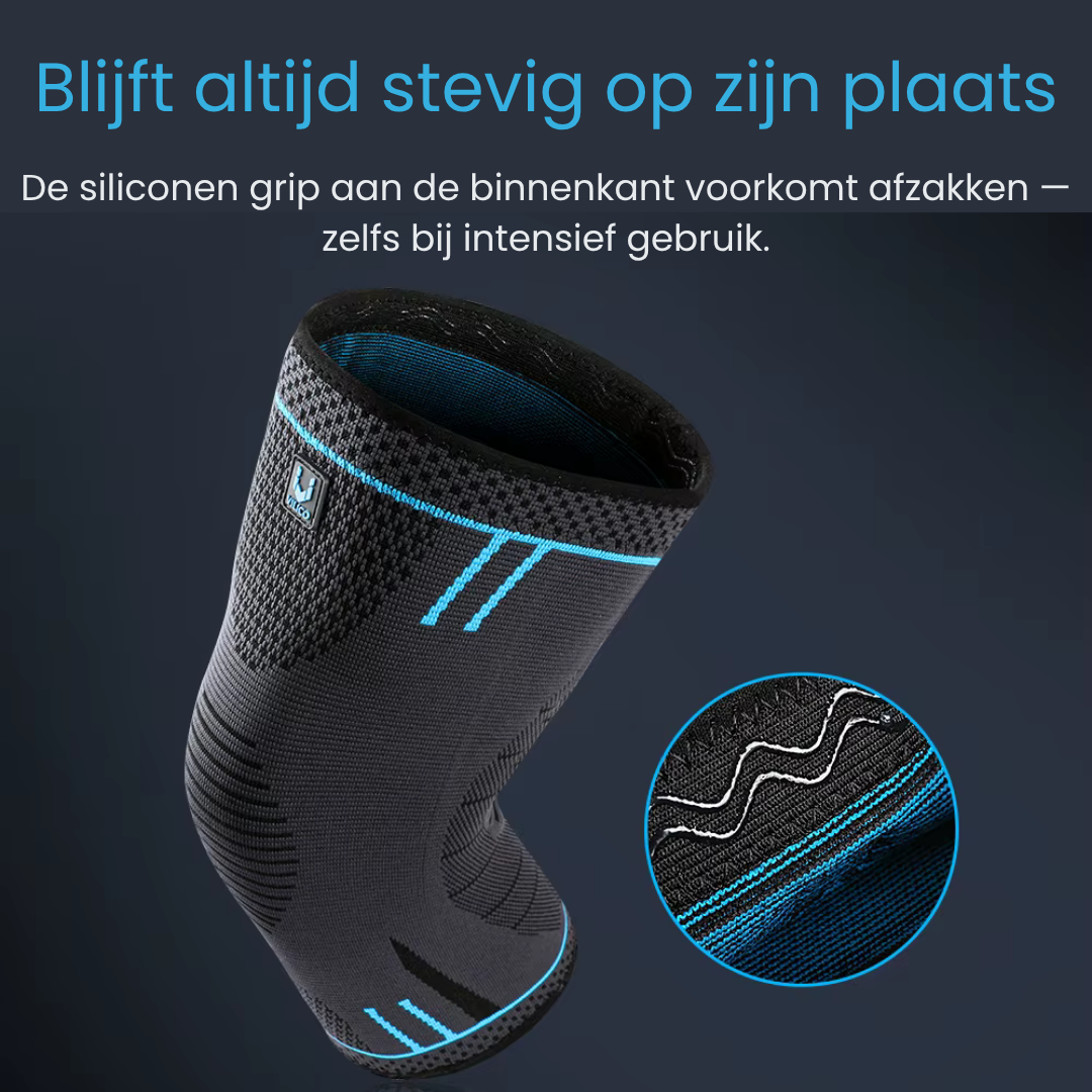 Het elastische, ademende materiaal beweegt soepel met je knie mee en geeft precies de juiste druk.
